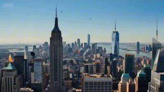 Ultra-realistic 15-second cinematic video, shot on IMAX. Daytime, clear blue sky over Manhattan. Exact timing: 0-2 seconds: Peaceful wide aerial shot of the New York City skyline, Empire State Building and One World Trade Center prominent, bustling streets below, birds flying. At 2.0 seconds: Sudden blinding white flash erupts directly above Midtown Manhattan. 2-5 seconds: Massive orange fireball expands at supersonic speed, engulfing skyscrapers, glass windows shattering in slow motion, cars flipping in the streets. 5-9 seconds: Colossal mushroom cloud surges upward at terrifying speed, shock wave ring races outward destroying everything in its path — buildings crumbling, debris and vehicles hurled into the air, Hudson River water exploding upward. 9-15 seconds: Camera slowly pulls back as the enormous radioactive mushroom cloud towers 10 miles high, glowing fiery orange and red at the base, dark ash plume billowing, entire Lower Manhattan engulfed in flames and dust, dramatic god-ray lighting, volumetric smoke, hyper-detailed destruction, National Geographic-level realism, intense cinematic colour grading, no text, no logos, terrifying scale.