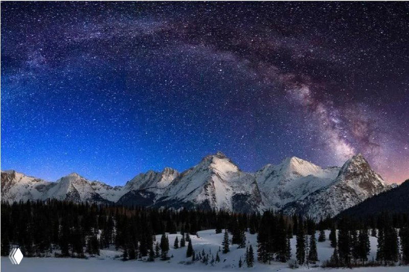 - заснеженная гора - стоит в тишине, спокойная и величественная;