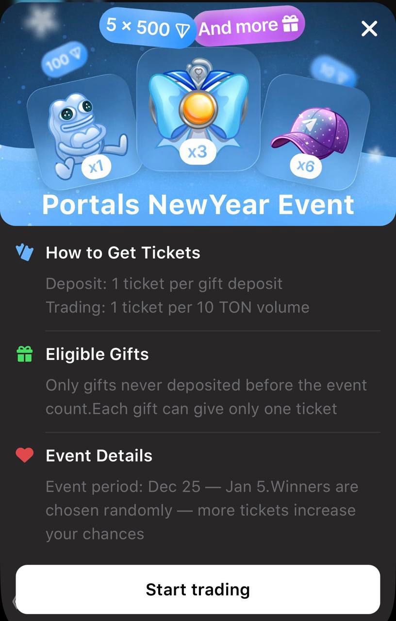 Portals вслед за MRKT запустил похожую активность с розыгрышем подарков😎