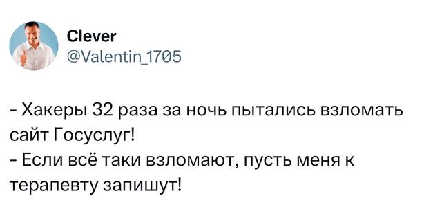 В России заблокирован «Твиттер» (теперь Х), но наш специальный корреспондент из-за рубежа присылает нам самые смешные твиты дня. А мы раз в неделю отбираем из них лучшие, бережно сохраняя авторские орфографию и пунктуацию.