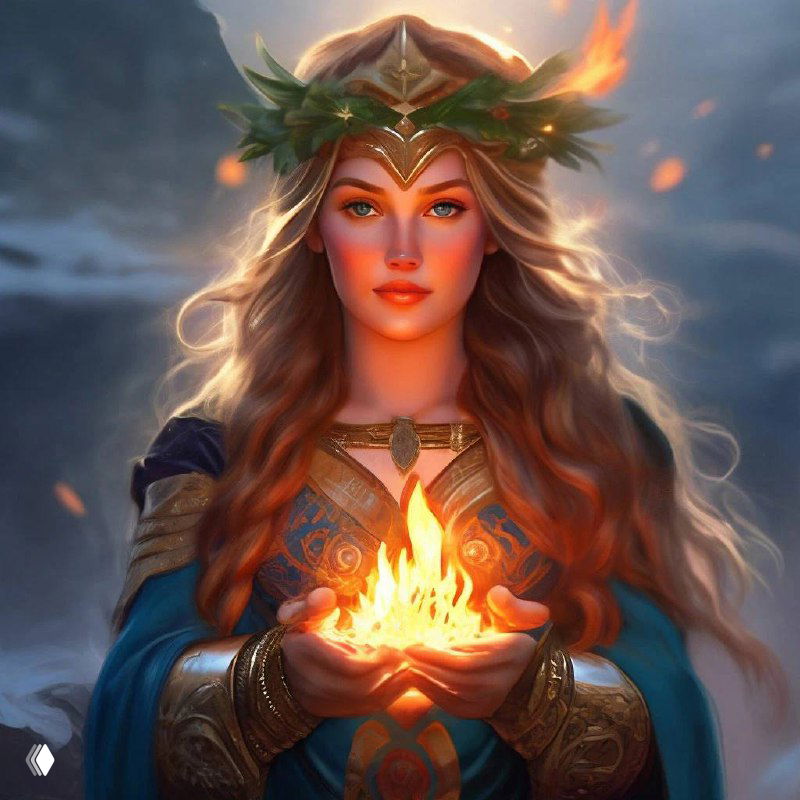 Тройственная целительница—Бригид, богиня трёх ликов, была воплощением исцеления, поэзии и кузнечного мастерства. Её свет озарял путь тем, кто искал знания и мудрость. Люди обращались к ней за помощью в исцелении тела и души.