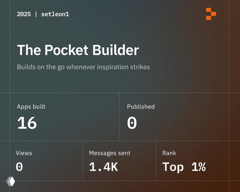 Большая часть этих 16 аппов была «одноразовая» и «для воркшопа», но 1400 сообщений и топ 1% всех пользователей Replit можно использовать как подтверждение того, что в вайб-кодинге что-то точно уже попробовал 🤓