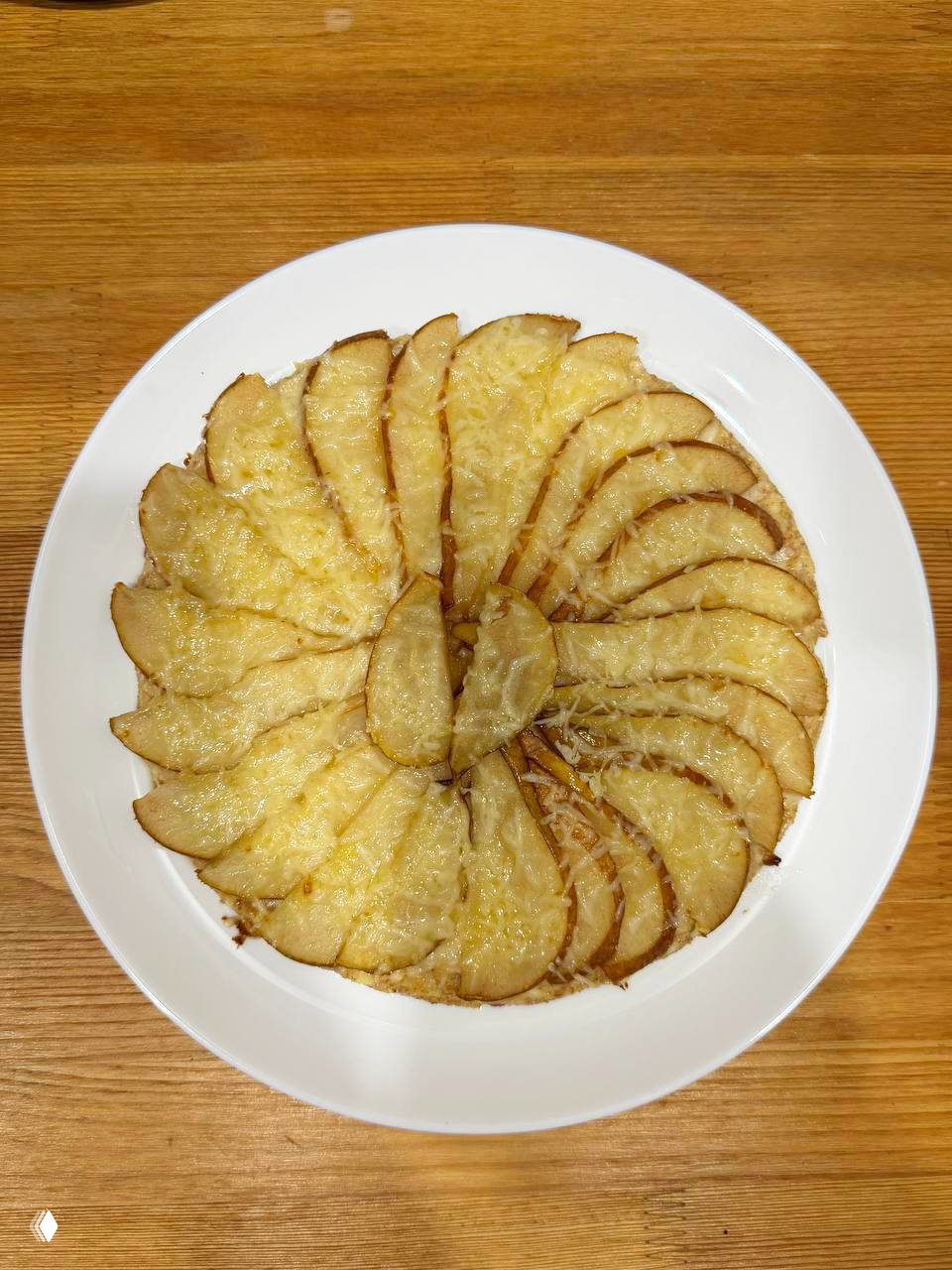 - 4️⃣ На основу равномерно выложить смесь из сыра и сливок.