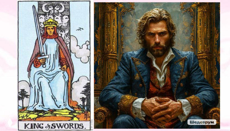 Король служит идеалом независимости и примером мастерства. Слегка наклонённый меч означает и резкую смену настроения, и мудрость в управлении своими желаниями. -