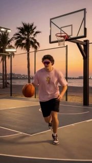Попытка повторить баскетбольный ролик закончилась типичными артефактами генерации (ломаная физика, неестественные движения, отсутствие веса)