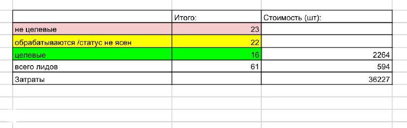 *22 лида на момент публикации поста еще не квалифицировано. Возможно, стоимость лида еще снизится.
