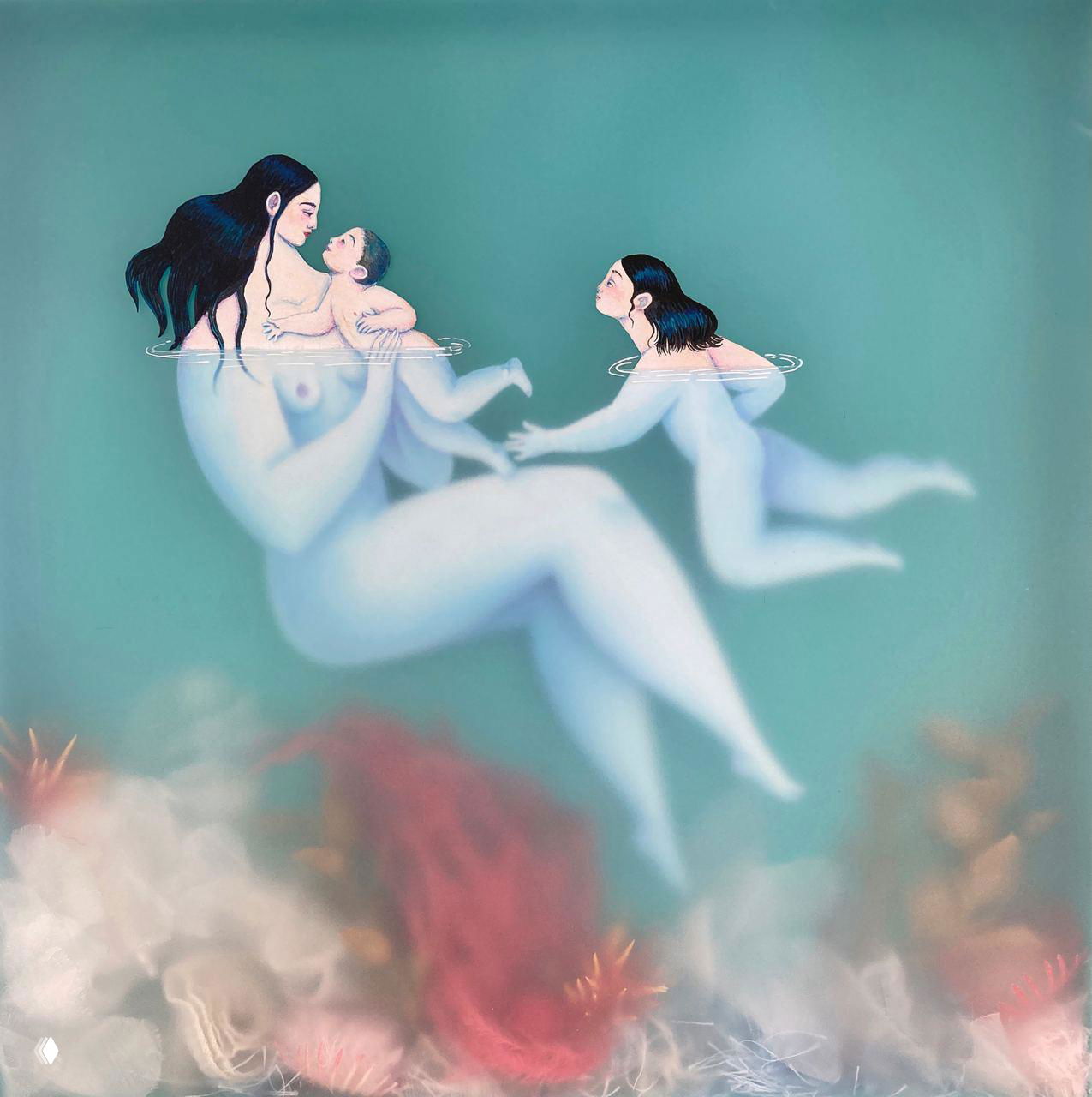 Источником вдохновения для создания серии стали истории о нимфах Океанидах из греческой мифологии. В ней женщины и дети, которые беззаботно плавают в воде, олицетворяют материнскую заботу и эмоциональную привязанность