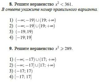 А для x² ≥ 289 — те числа, чей модуль больше или равен 17: от –∞ до –17 и от 17 до +∞.