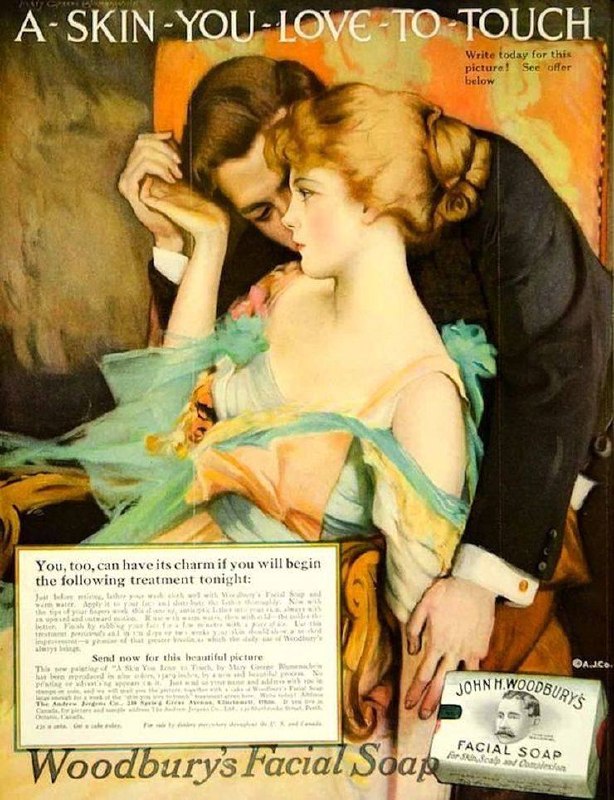 Реклама изображала красивую юную девушку и молодого человека, который целовал её в шею. Это была провокационная, граничащая с неприличием кампания в тогда ещё достаточно консервативной Америке. Привлекательная картинка подкреплялась списком правил по уходу за кожей с мылом Woodbury и обещанием бесплатного экземпляра в обмен на купон.