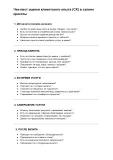 Прикрепляем документ «Чек-лист оценки клиентского опыта (CX) в салоне красоты»⬆️