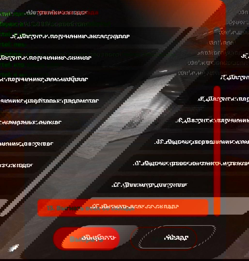 ✨ Лидеры могут гибко настраивать доступы к оружию, патронам, аптечкам, и другим предметам. Появилась возможность видеть, кто занимает склад, и принудительно выводить игроков, если они мешают его использованию. При бездействии доступ к складу автоматически закрывается.