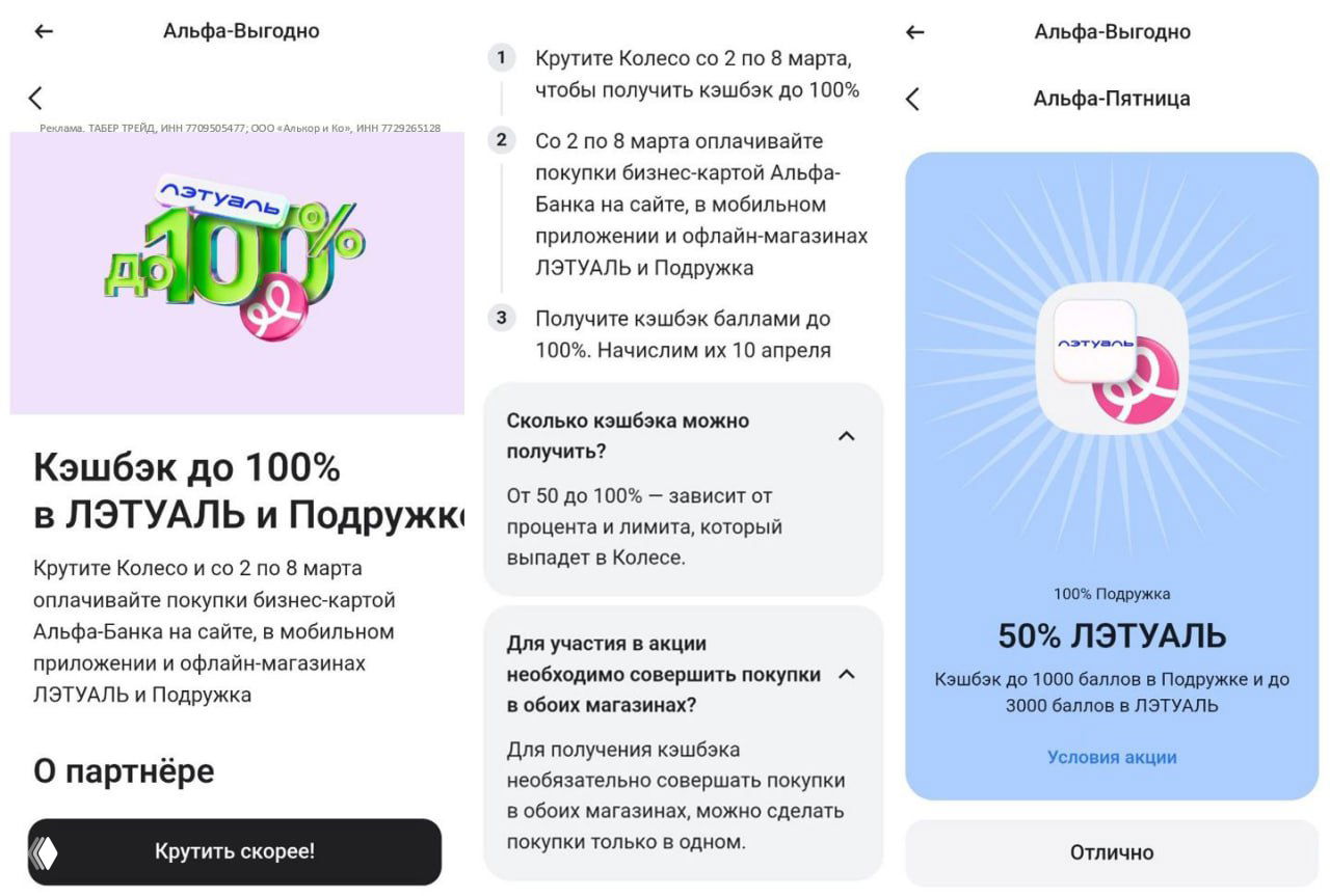 ⚡️В приложении для бизнес-карт появился барабан с кэшбэком до 100% за покупки 2-8 марта в 💄 Лэтуаль и 💄 Подружке (+промокод).