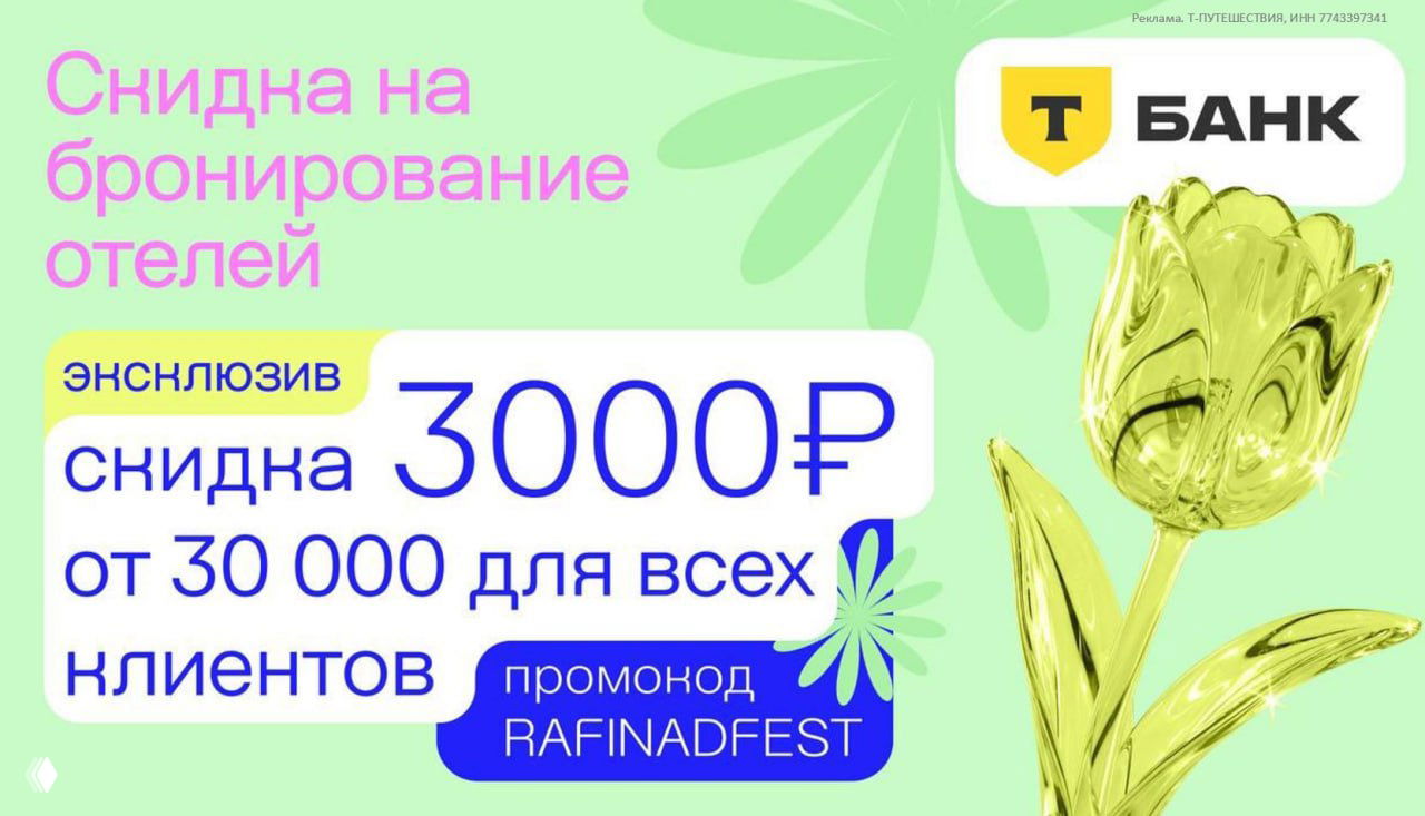 RAFINADFESTСкидка действует на любое бронирование по предоплате.
