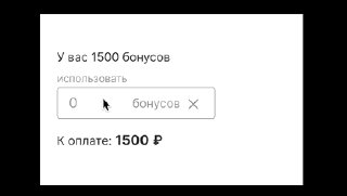 Подсмотрела у коллеги, как она сделала прототип с возможностью ввода цифр с клавиатуры, и решила упороться, что ещё делать на выходных сделать тоже что-то такое. На прототипе можно вводить любую сумму с клавиатуры, по крестику или esc — сбрасывать. Сумма к оплате автоматически пересчитывается, а если выходим за доступное количество бонусов — доступные бонусы подсвечиваются красным.