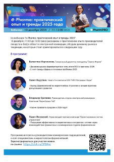Завтра приму участие в вебинаре «e-Pharma: практический опыт и тренды 2025» от PharmPRO, где выступаю информационным партнером.