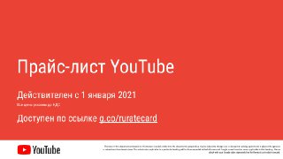 - Также доступны пакеты "YT Select" (с unskip 20 сек. видео + пропускаемыми) и Roadblock (выкуп 100% SOV на канале).