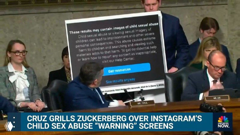Новенькое на слушаниях: конгрессмены буквально притащили распечатанные таблички с предупреждениями из соцсетей. И регулярно их показывали. Кайф.
