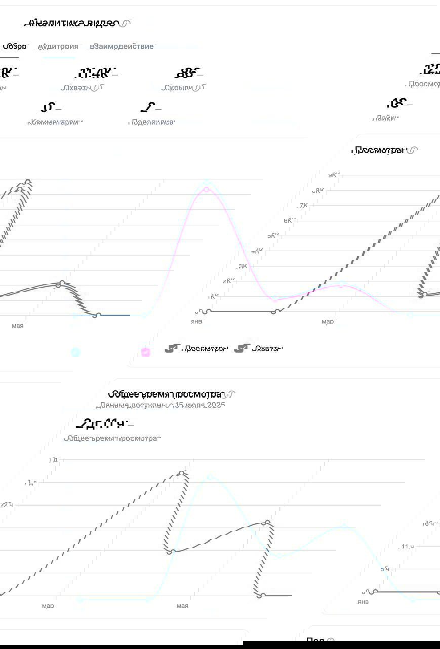 Моя гипотеза в том, что сама платформа, ВК Видео, прекрасно знает разницу между просмотрами и автоплеем. И выдаёт статистику на вкладке Взаимодействий, именно по просмотрам, просто минуся все запуски видео. Поэтому такие красивые и ровные графики.