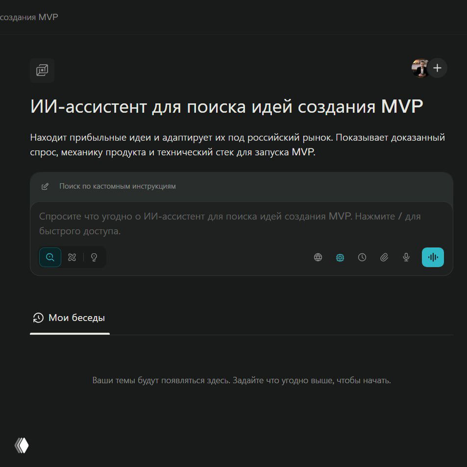 В общем я создал ИИ-ассистента на базе Perplexity. Он ищет идеи для MVP, которые уже приносят прибыль, проверяет спрос в России и адаптирует под наши реалии. Для тех, кто не сталкивался MVP это минимально жизнеспособный продукт, по‑стартаперски)