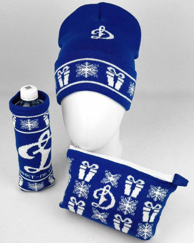Мы создали полноценный набор — стильные шапки, уютный шарф, компактный пенал и оригинальные чехлы на бутылки и термосы для футбольного клуба Динамо Санкт-Петербург! 💙