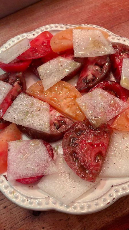 Самая необычная подача сезонных томатов — со слайсами дыни! Было очень прикольно и свежо. Сочные тальятелли с лисичками и спагетти с тунцом. Но главная звезда вечера — профитроли с ореховым кремом в шоколадном соусе. Они были ну просто потрясающими!