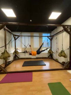 Это такая штука, где тебя растягивают в разных плоскостях — вроде йоги, но со стропами и мешками, и ты чувствуешь себя одновременно как кот и как человек, у которого на секунду выключили все мысли.
