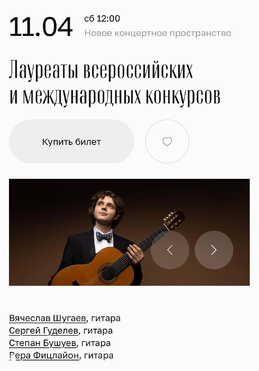 Друзья, ровно через 2 недели встречаемся в Новом концертном пространстве Зарядье! Буду играть в компании прекрасных молодых гитаристов: