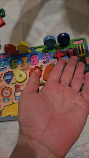 В конце видео слышно, как старшая хвалит младшего за то, что он хорошо справился с игрой (сортер, раскладываем предметы на свои места).