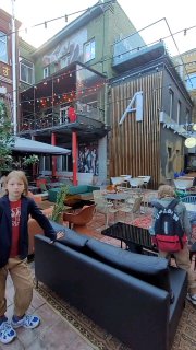 Много граффити, диваны и ковры прямо на улицах, уютные фонарики, японская еда и... в подворотне мотик и барбершоп специально для суровых байкеров)
