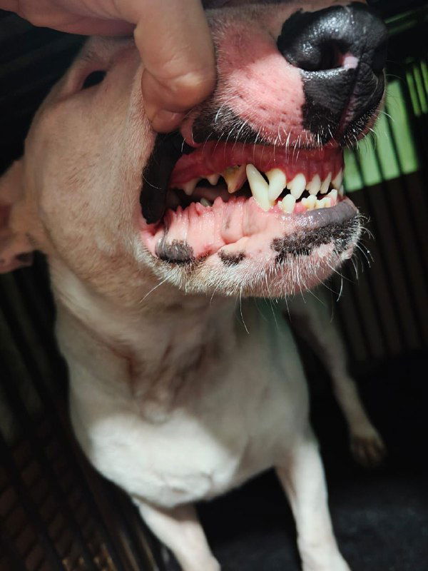 Берт сломал клык... прямо перед поездкой в Новороссийск на выставку Национального клуба породы... 😑