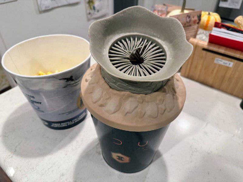 Подсмотрела у Саши Чон пиар-мерч, который выпускается к премьере Дюны 2, и там есть вот такое криповое ведро для попкорна в стиле песчаного червя 😱
