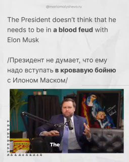❗️ Вот вам пример: Сейчас в США разгорается конфликт между Илоном Маском и Дональдом Трампом. Вопросы власти, влияния, будущего страны — всё на поверхности. А вице-президент США Джей Ди Вэнс дал на это свою реакцию — прямо в интервью комику Тэо Вону (Theo Von).