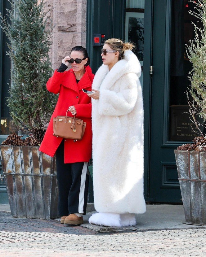 Смотрим и повторяем за Брукс Нейдер. На ней только чёрный обтягивающий комбинезон и ультра‑базовые аксессуары. Однако, длинная объёмная шуба превратила это в дорогой après‑ski гламур.