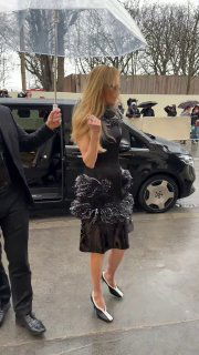 Поистине звездный показ Dior: образы гостей — Приянка Чопра, Наталья Водянова, Аня Тейлор-Джой и другие на фоне логотипа бренда.
