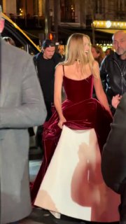 Робби призналась, что наряд был вдохновлён самой красной дорожкой. Своё роскошное платье она дополнила украшениями от Lorraine Schwartz в более 100 карат.