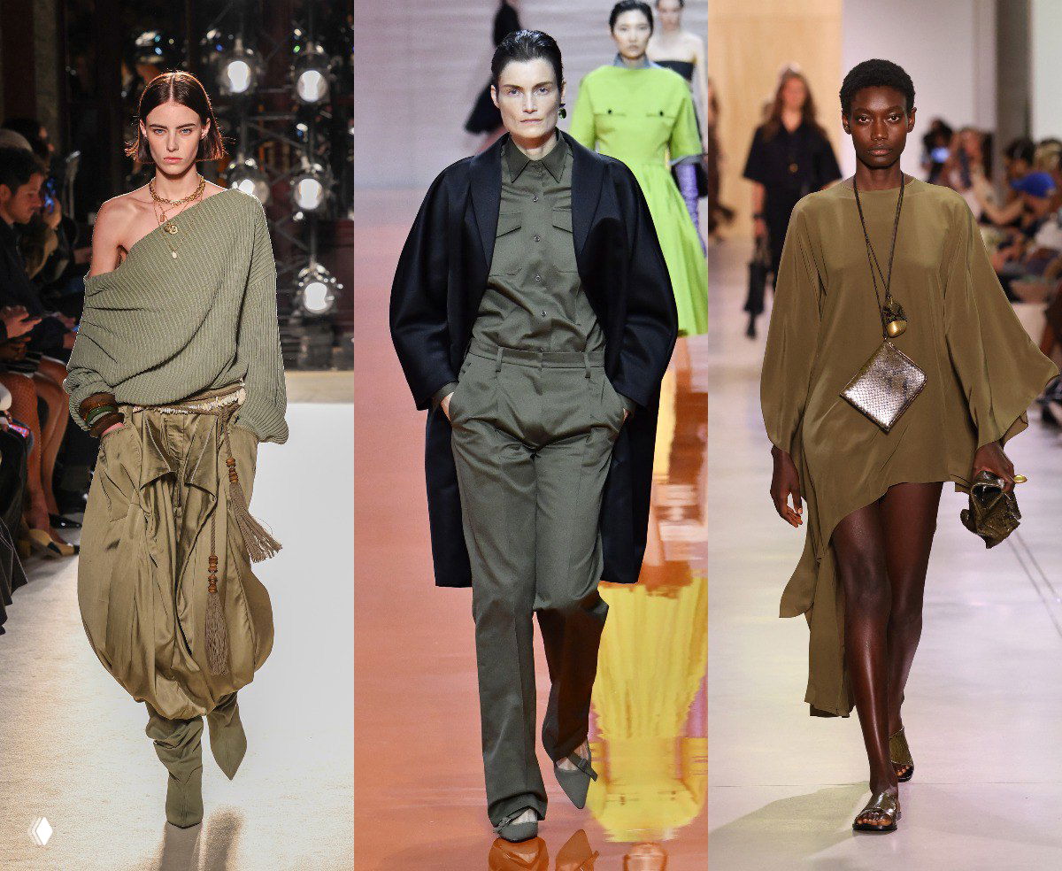 Оливковый соединяет всю сезонную зелёно-фиолетовую яркость в единую систему координат, превращая хаос в продуманную палитру. Тот самый случай, когда стиль и практичность идут рука об руку.