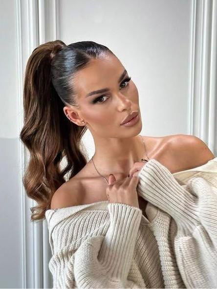 - Высокий хвост с чистой зоной висков. Он усилит вертикаль лица и эффективно соберёт черты. Гладкие боковые зоны делают выразительность сильнее, так что не игнорируйте эту деталь;