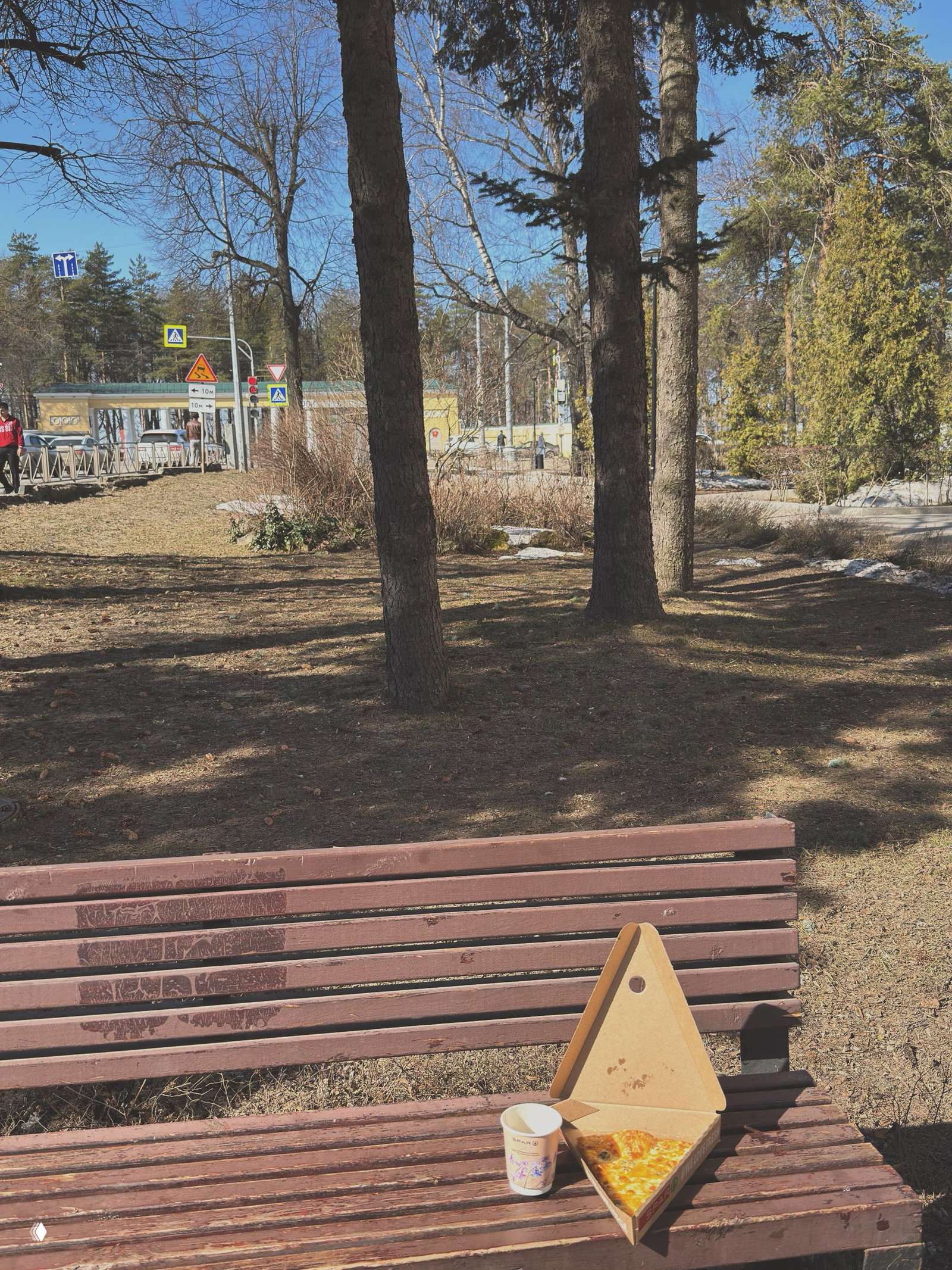 Я отправился в студию, готовить материалы к завтрашнему старту обновленного курса Телесной Терапии, которому я очень рад, и решил заехать перекусить. И так хорошо, спокойно и тихо посидел на лавочке с кофе и куском пиццы. Справа на соседней лавочке сидела бабушка, мимо прошла молодая мама с ребенком на велосипеде, пробежали школьники.