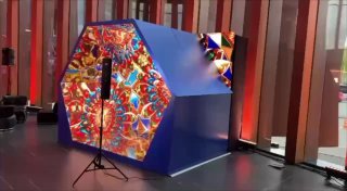 "Калейдоскоп" – это больше, чем просто фотозона. Это целая симфония цветов и движений, где экран и зеркала сочетаются, создавая волшебный калейдоскопический эффект. Вы можете выбрать видео-контент или логотип на фоне абстрактных видеороликов, либо подготовить свой собственный видео-контент – всё по вашему желанию.