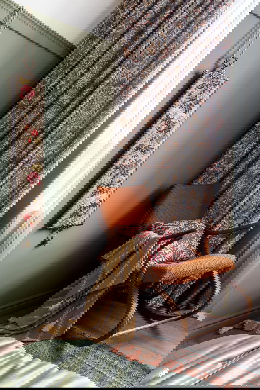 «Каждый предмет в квартире имеет свою историю. Самым необычным из них является старинная чугунная печь, из которой мы сделали умывальник в ванной комнате, а роспись на стенах навеяна формой зеркала начала XX века», — рассказала автор проекта.