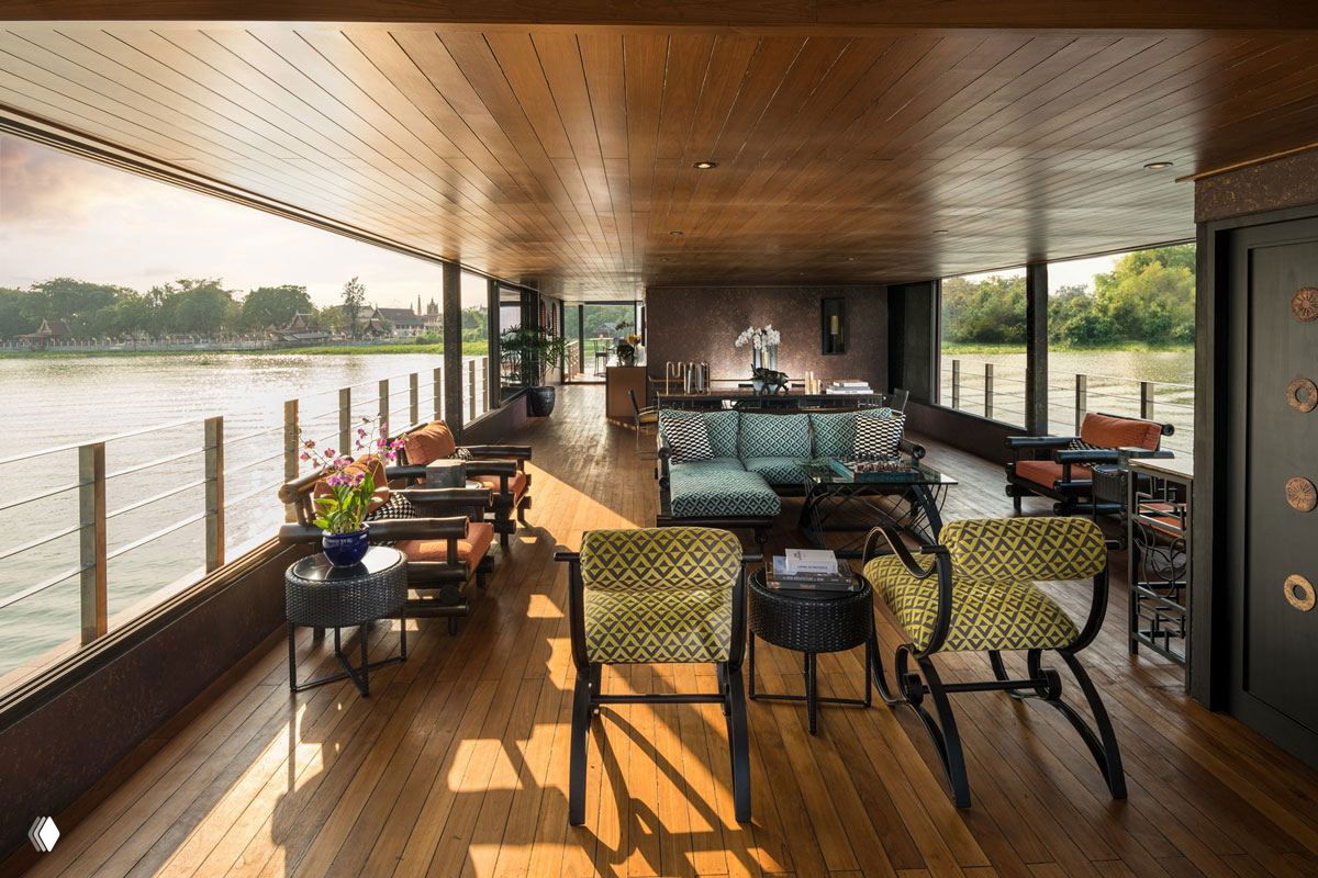 Интерьеры кают погружают гостей в прошлое, знакомя их с историей страны: редкий тайский шелк, предметы антиквариата и мебель из темного дерева, натуральные природные оттенки, декоративное искусство от местных ремесленников.