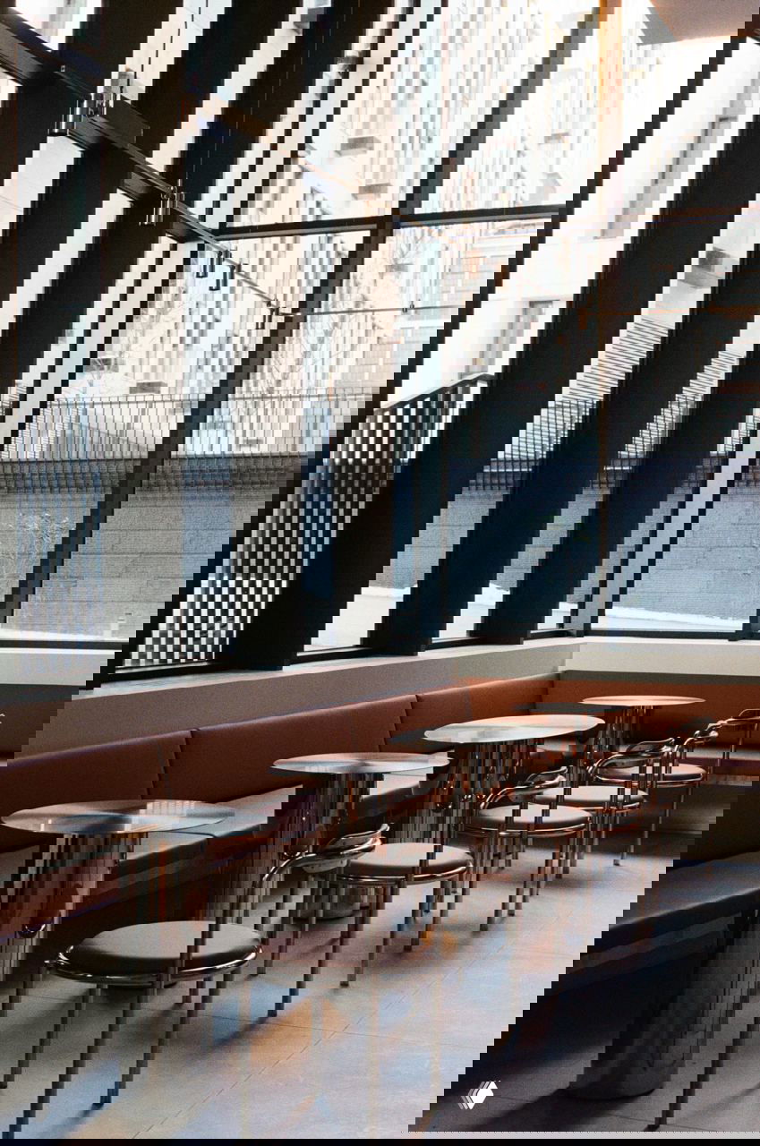 Интерьер новой точки Nothing Fancy в Хамовниках Эдуард Еремчук и Катя Пятицкая из студии Edxxkat сделали более теплым, чем в других бистро сети, где преобладали металл и холодные оттенки.
