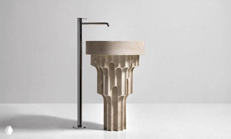 Обычно мраморные раковины делают гладкими и тяжелыми на вид. Паоло Улиан для Antonio Lupi пошел другим путем: он высверлил в каменном блоке множество отверстий, создав сложную решетку.