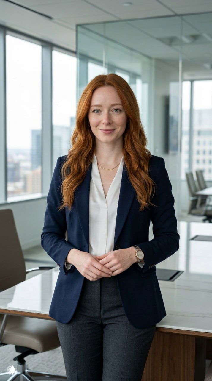 Используй человека с загруженного фото как основу внешности: сохрани узнаваемые черты лица, возраст, тон кожи, волосы и общую внешность без искажений. Фотореалистичная деловая фотосессия в премиальном business style. Человек в элегантном классическом образе: структурированный пиджак, рубашка или топ, строгие брюки или юбка, дорогие минималистичные аксессуары. Локация: современный офис с панорамными окнами, стеклом, металлом и мягким естественным светом. Поза уверенная и статусная: стоит у рабочего стола или сидит в кресле, прямой взгляд в камеру, спокойная профессиональная мимика. Съемка как для бизнес-портрета и editorial-журнала, medium shot, 85mm, малая глубина резкости, мягкий контраст, чистый свет, premium corporate aesthetic, realistic skin texture, high detail, no text, no watermark.