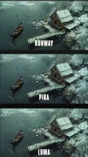 - Высокая динамика в кадре. Есть и другие доступные в открытном доступе модели для генерации видео: Pika и Runway, но у них очень низкая динамика в кадре, часто больше похоже на медленное движение камеры в относительно статичном кадре (см. первое видео со сравнением трех моделей, позаимствовала из Сиолошной)