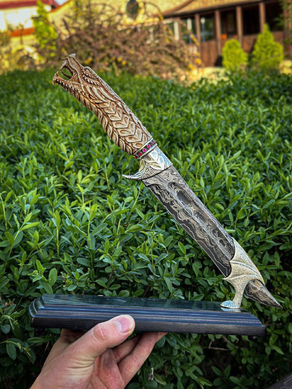 - Рукоять Рог Лося вырезанный в ручную 💯 в виде дракона + камни в глазах фиониты + нанесение окраса