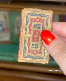 Миниатюрные книги, особенно в XIX веке, выпускались в самых разных жанрах - чаще всего встречаются религиозные издания, поэтические альманахи и словари. Например, в специальном кейсе с лупой - это именно словарь. Для справки - 1/4 дюйма - это 6 мм.