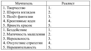 Для примера, пара «Я – мечтатель» → «Я – реалист».