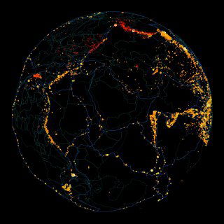 Точки под поверхностью — подземные землетрясения. Они происходят на глубине от нескольких сотен метров до 700 километров. Глубже этой отметки породы уже ведут себя как пластичная масса и не вызывают землетрясений