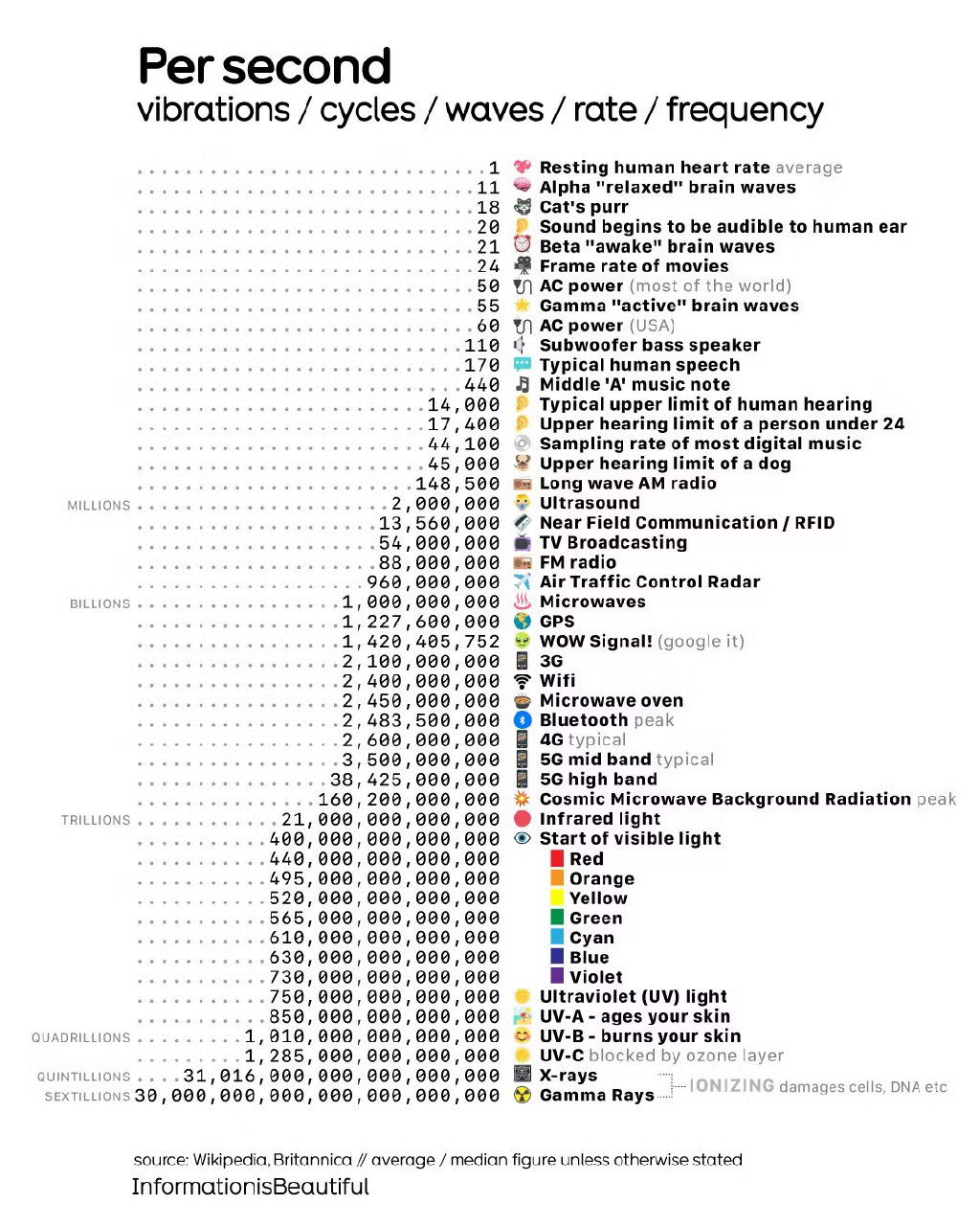 Частота колебаний и циклов в секунду разных явлений